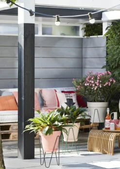 This woven balcony planter is a great shape for creating a fantastic display of your favourite plants or flowers.