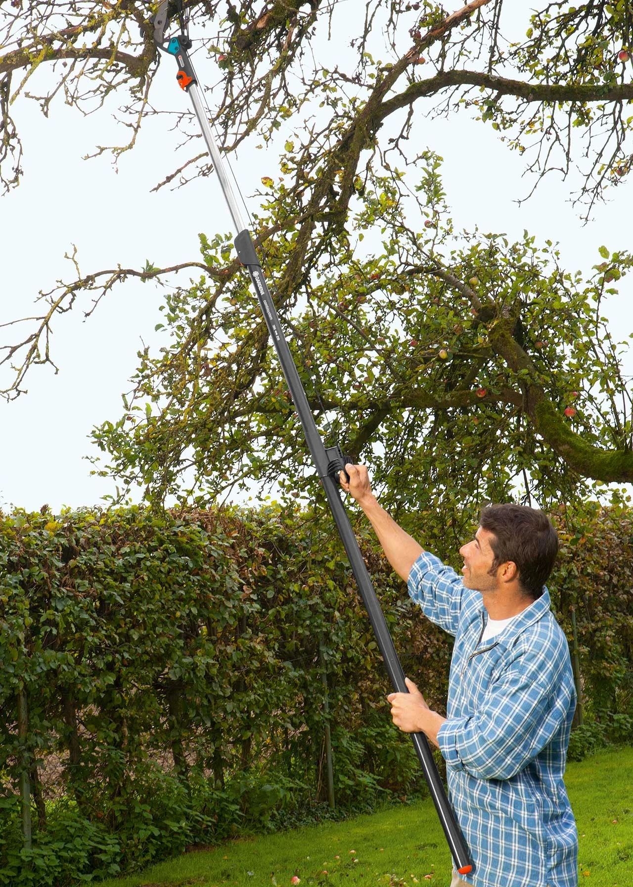 The pulling cord is 4.7m long, and is tear-resistant, so you can combine the branch pruner with a Gardena telescopic combisystem handle; allowing you to prune high tree branches safely from the ground. All GardenaGardena combisystem handles feature a screw attachment, for a secure, wobble-free connection.