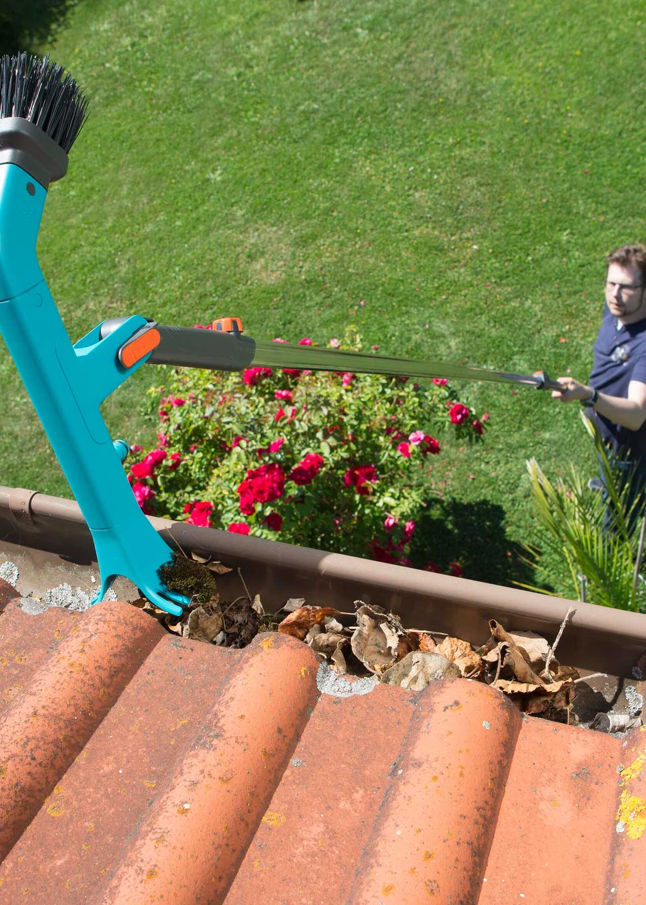 Clean and clear gutters easily with the Gardena combisystem Gutter Cleaner. When combined with a Gardena Telescopic handle you can clean gutters up to 5m high safely from the ground. The hard bristles on the gutter cleaner allow you to scrape away stubborn dirt and leaves, and to wash away, simply attach a hose to the gutter cleaner for a clean water flow.
