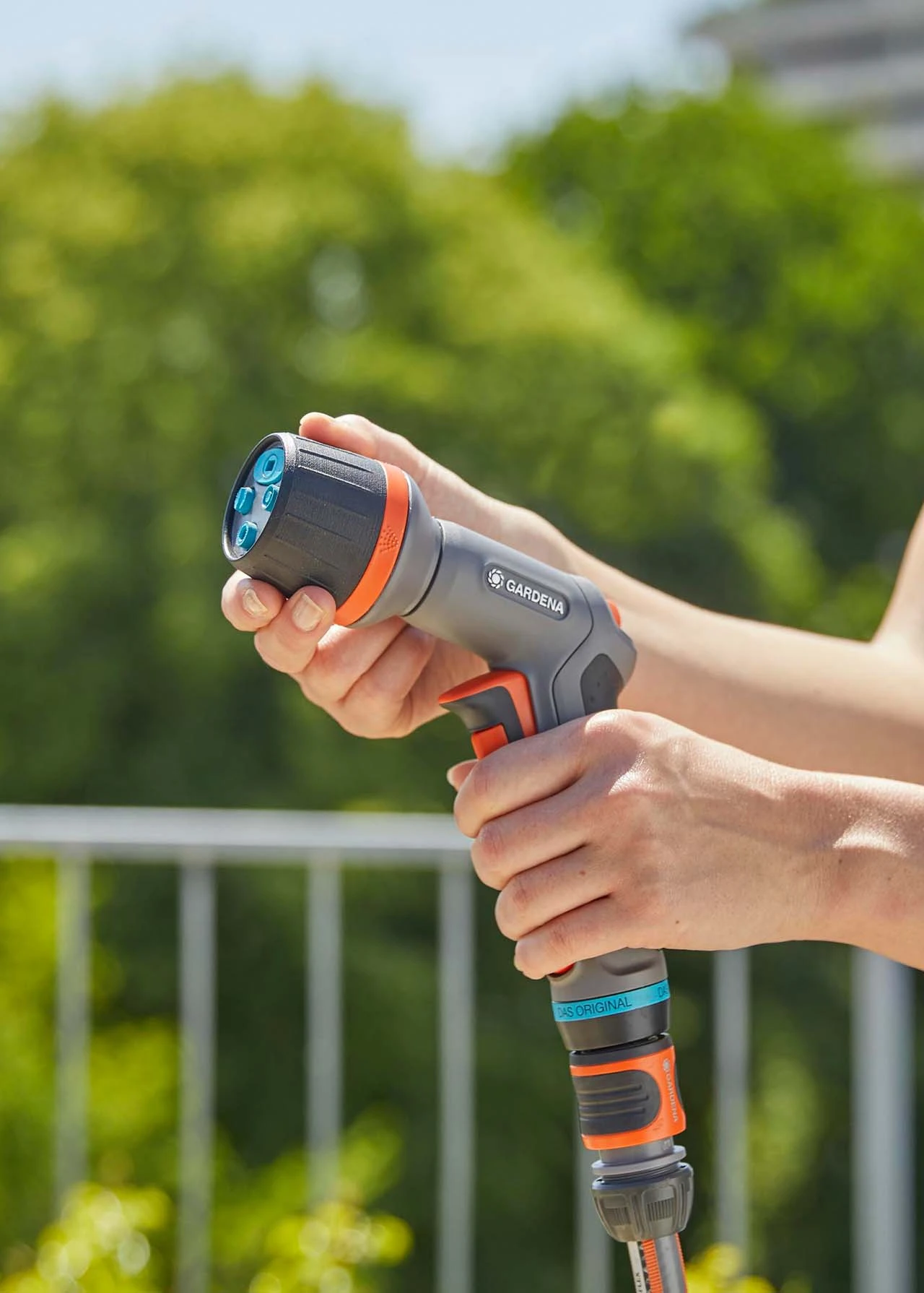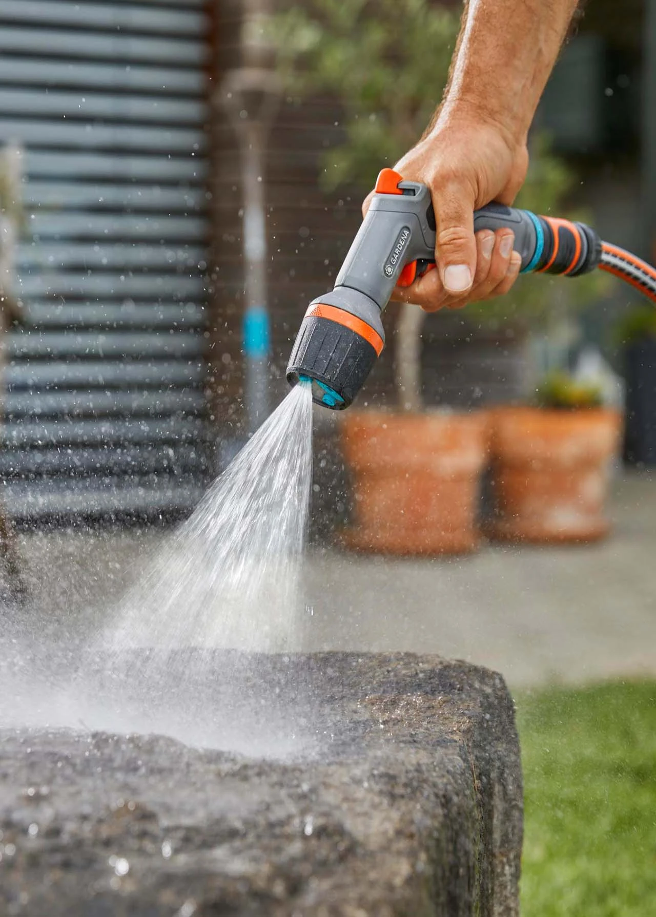 The GARDENA Comfort Cleaning Nozzle EcoPulse is suitable for both powerful cleaning and garden irrigation. It uses up to 40 percent less water when compared to a standard GARDENA hard jet.