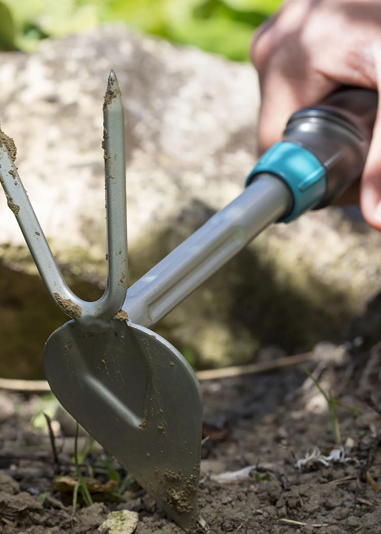 Perfect for loosening soil and weeding tasks the GARDENA Comfort Hand Hoe is coated with DuroPlast to prevent rusting.