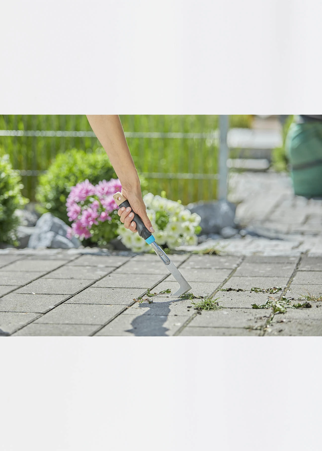 Effortless and sustainable – cleaning gaps in the driveway or on the terrace is fast and easy thanks to GARDENA’s EcoLine patio weeder. The patio weeder is ideal for removing moss and weeds between narrow slab gaps, at wall edges, in driveways or between paving stones around the house.