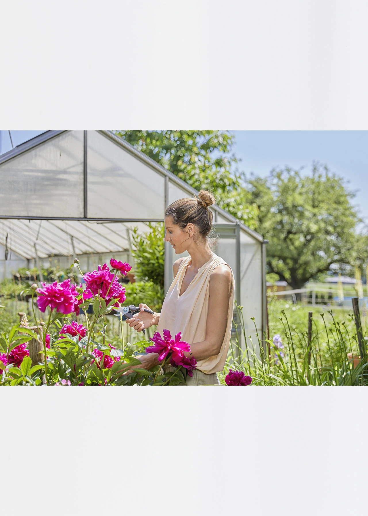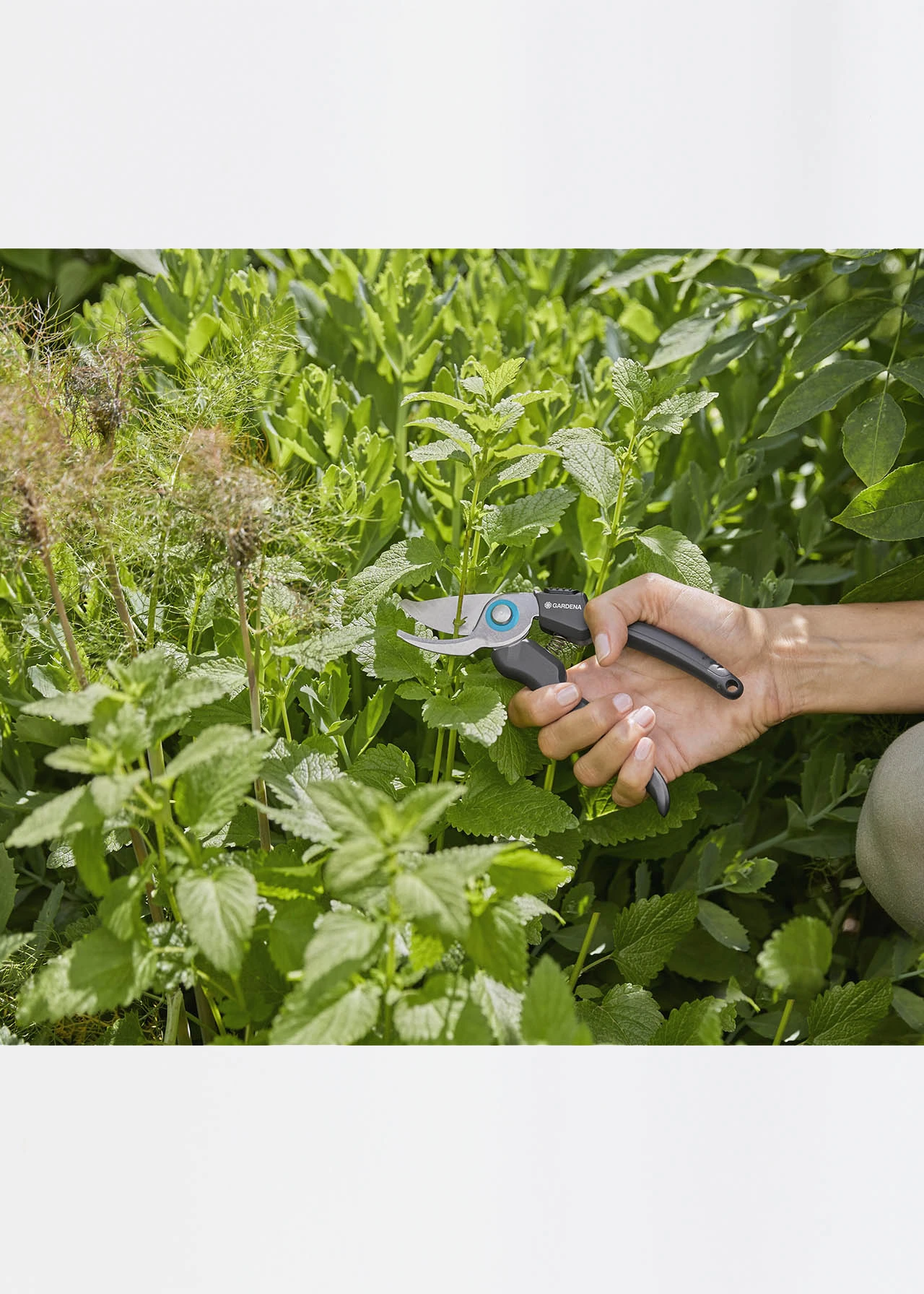 More than 75 percent of the processed steel components of the secateurs are made of recycled material. The metal used is not only sustainable, durable and robust, but also provides an elegant and timeless design.
