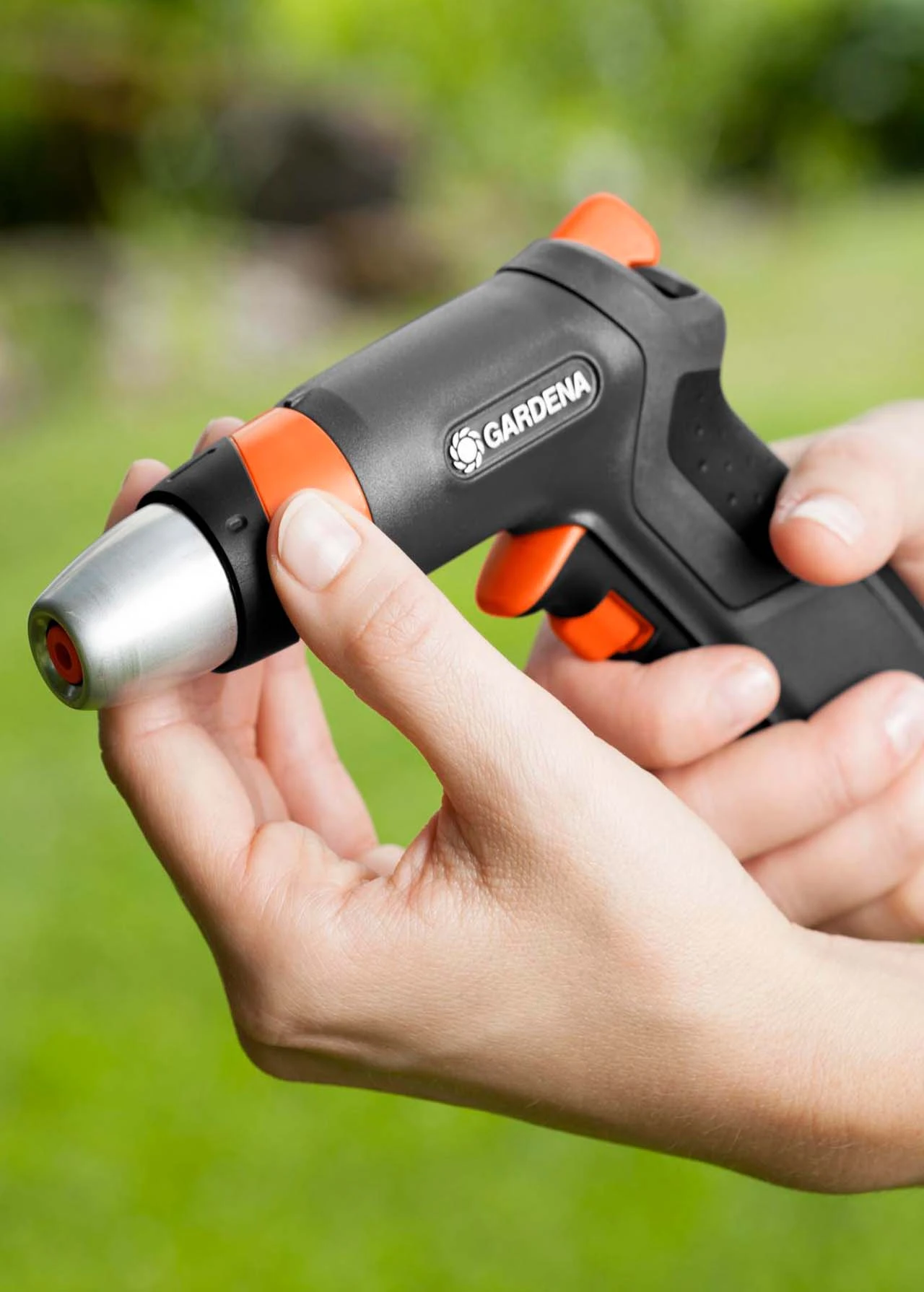The GARDENA Premium Cleaning Nozzle is a robust metal spray nozzle for cleaning surfaces and irrigation of the garden. Manufactured from metal elements, this spray nozzle is extremely durable and frost resistant.