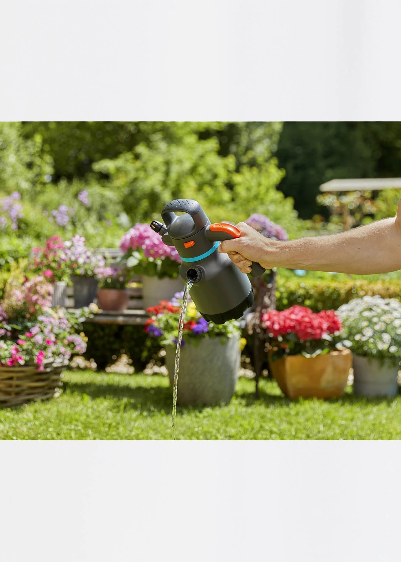 The GARDENA Pressure Sprayer 1.25L is perfect for irrigating indoor and outdoor plants. Simply use the ergonomically designed D shaped handle to build pressure then simply press the button on the handle to start spraying.