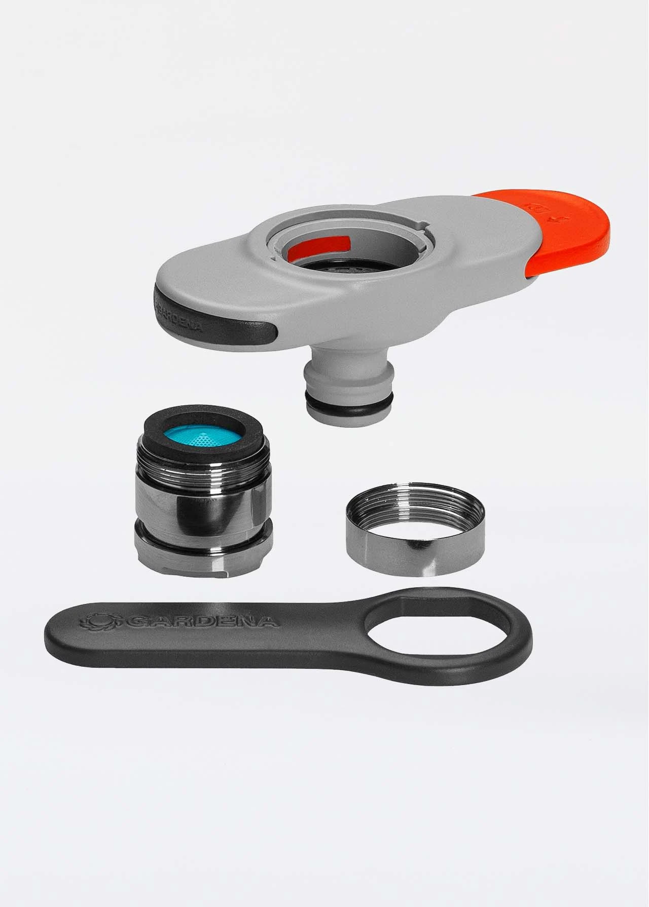 First, attach the threading to your tap and tighten using the wrench provided. Next, place the adapter on the threads and press the slider. Slide it to fix the adapter to the threading and you’re good to go. To remove it, press the slider in the opposite direction.