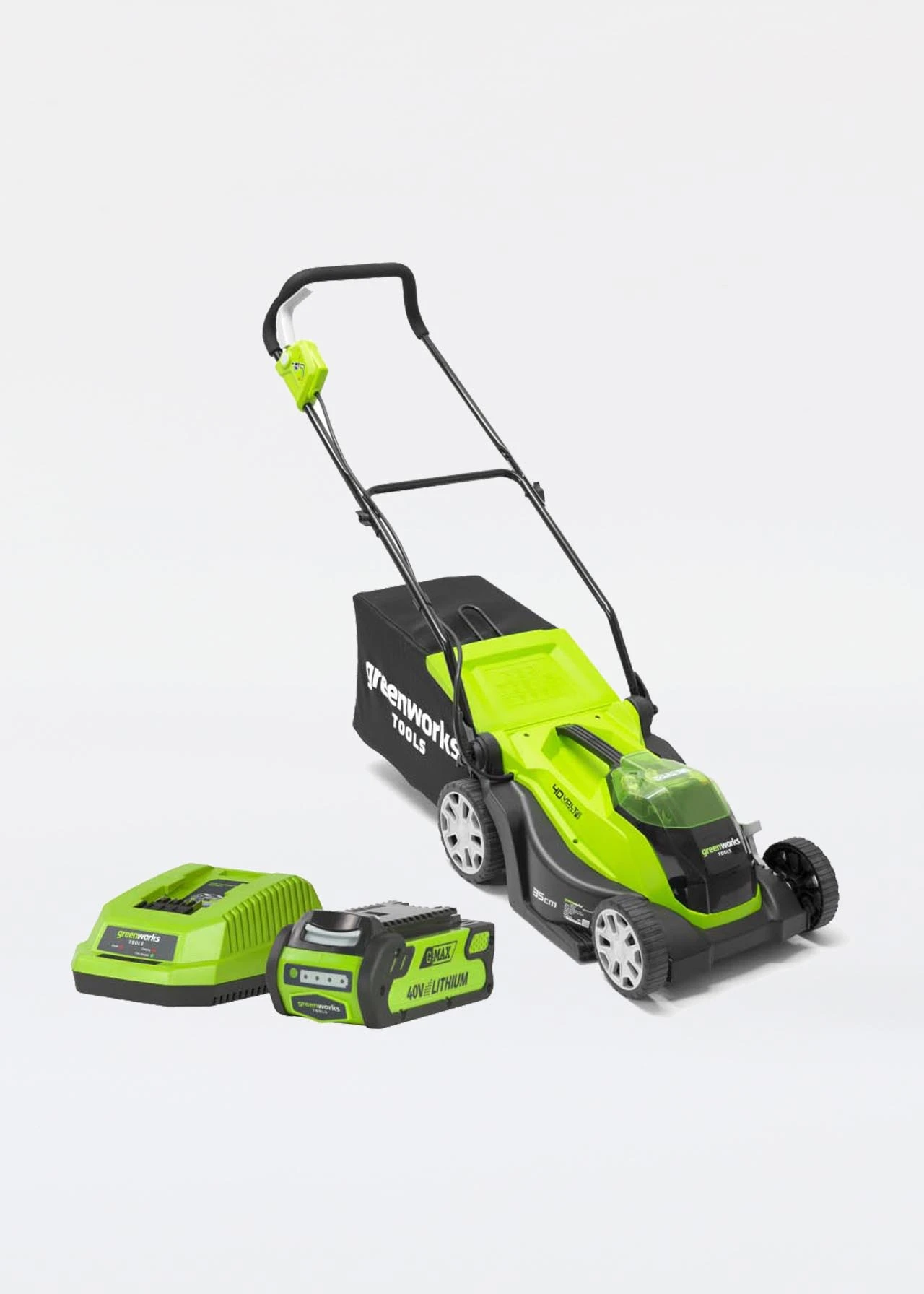 Make light work of cutting your lawn with the Greenworks G-Max 40V 35cm Cordless Lawnmower with 2Ah lithium ion battery and charger.