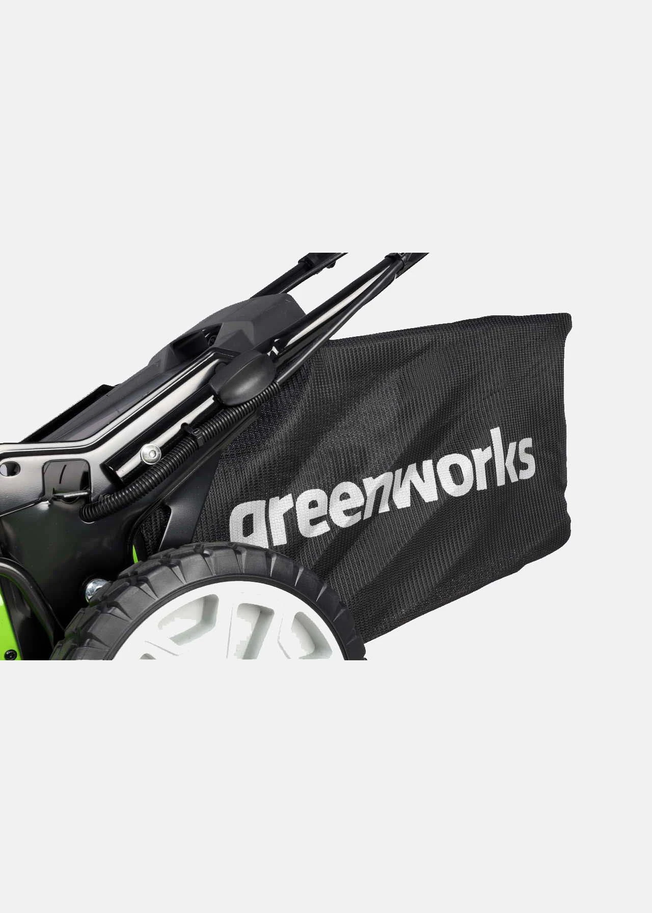 Powerful 46cm double battery cordless lawnmower with self-drive. The Greenworks GD24X2LM46SP is a feature packed self-propelled lawnmower with a 46cm cutting width allowing for a larger amount of lawn cutting in a shorter period of time.