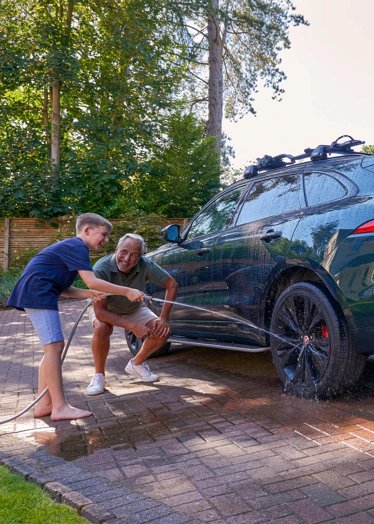 Compact and adjustable hose nozzle with 3 spray patterns.