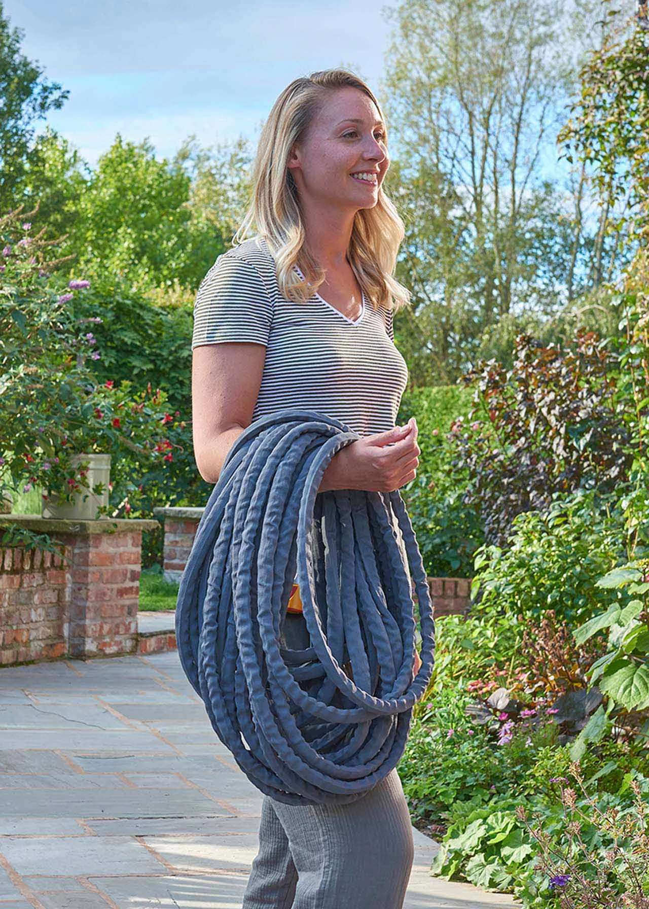 This advanced hybrid garden hose combines the best of two hose technologies traditional PVC and textile. It is up to 50% lighter compared to traditional hoses and is kink free and easy to manoeuvre. Super tough and durable it’s made with Tuff-Fibre Durable Woven Fibre Technology.