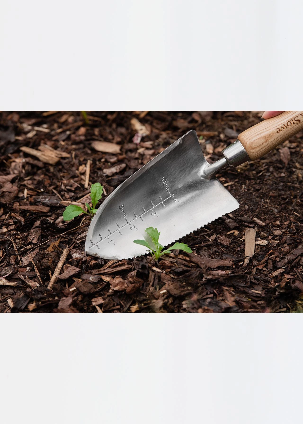 Our capability trowel has been designed in tribute to his beautiful designs and the belief that in gardening everything ncould be improved. This trowel has the functionality to endure many gardening tasks and has been expertly designed with the gardener in mind. This is the only trowel you will ever need, made from high quality polished stainless steel head for rust resistance and minimal soil adhesion. Handle made from beautiful ash wood, contoured for a perfect comfortable grip. Features a serrated edge to make light work of weeding, severing roots and opening compost bags. A sharpened, pointed ointed tip for easy soil penetration and robust hammer to aid hammering in anything from vine eyes to posts.
