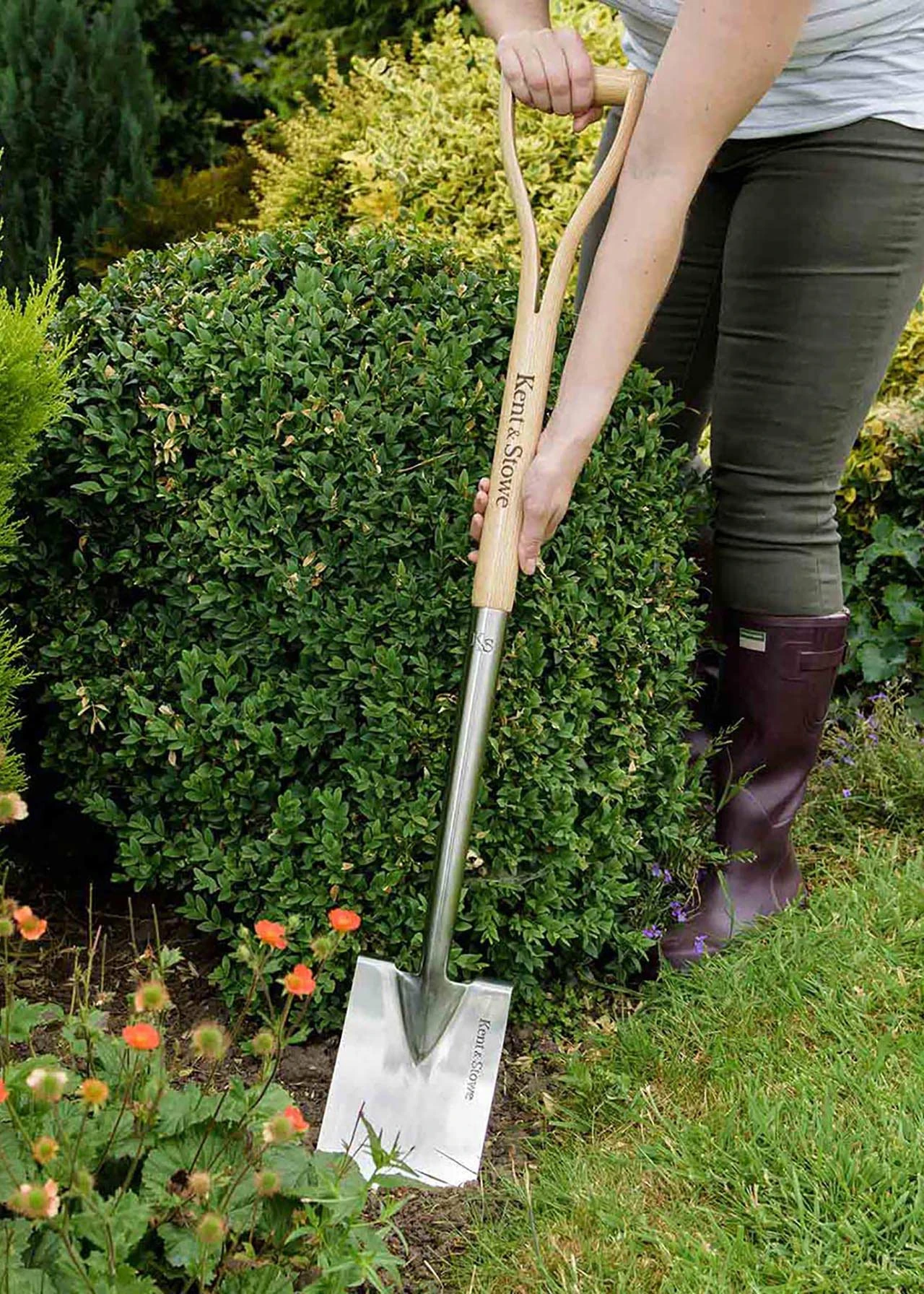 The Kent & Stowe Stainless Steel Border Spade is ideal for use in borders, beds and tight spaces due to the narrow blade. Perfect for cultivation, soil turning and improved drainage, ready for planting.