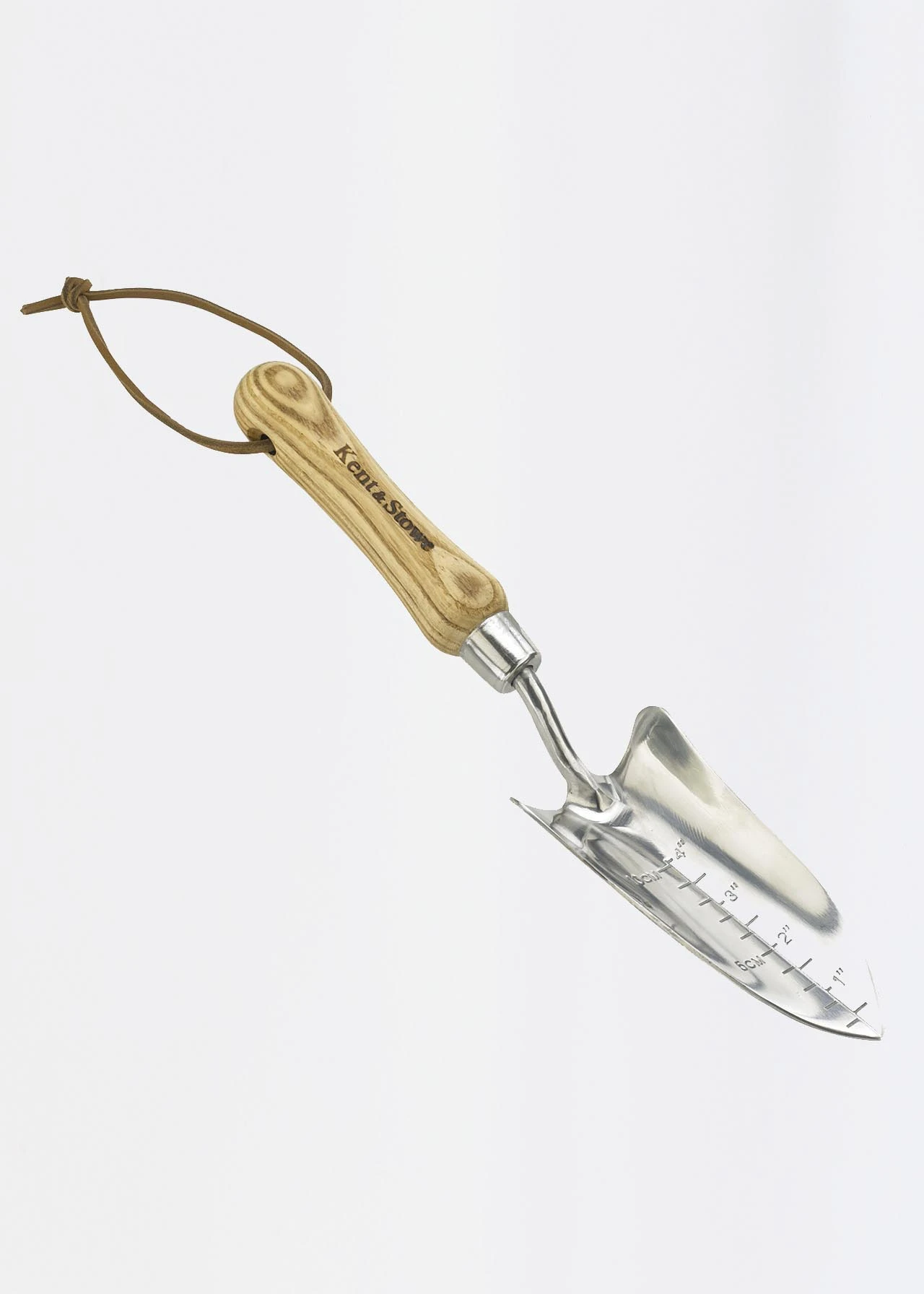 The Kent & Stowe Stainless Steel Transplanting Trowel has a beautiful ash wood handle, contoured for the perfect grip. It enables efficient planting with minimal soil adhesion and the cranked shaft protects knuckles during work.