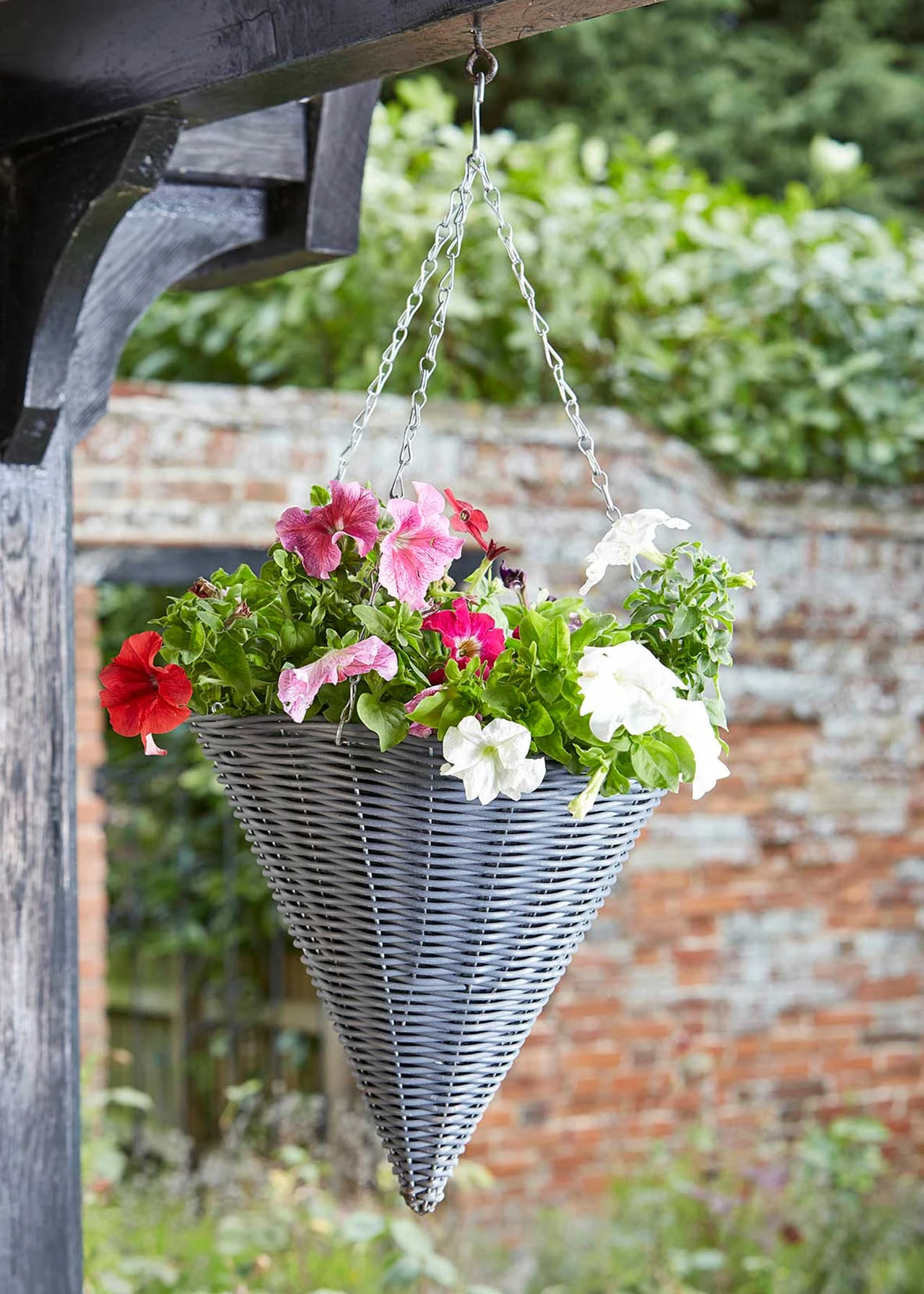 Provide the perfect home for your beautiful flowers with this Slate Faux Rattan Cone by Dobbies. It’s made from tough and durable rattan effect material, meaning it will hold up well outdoors.