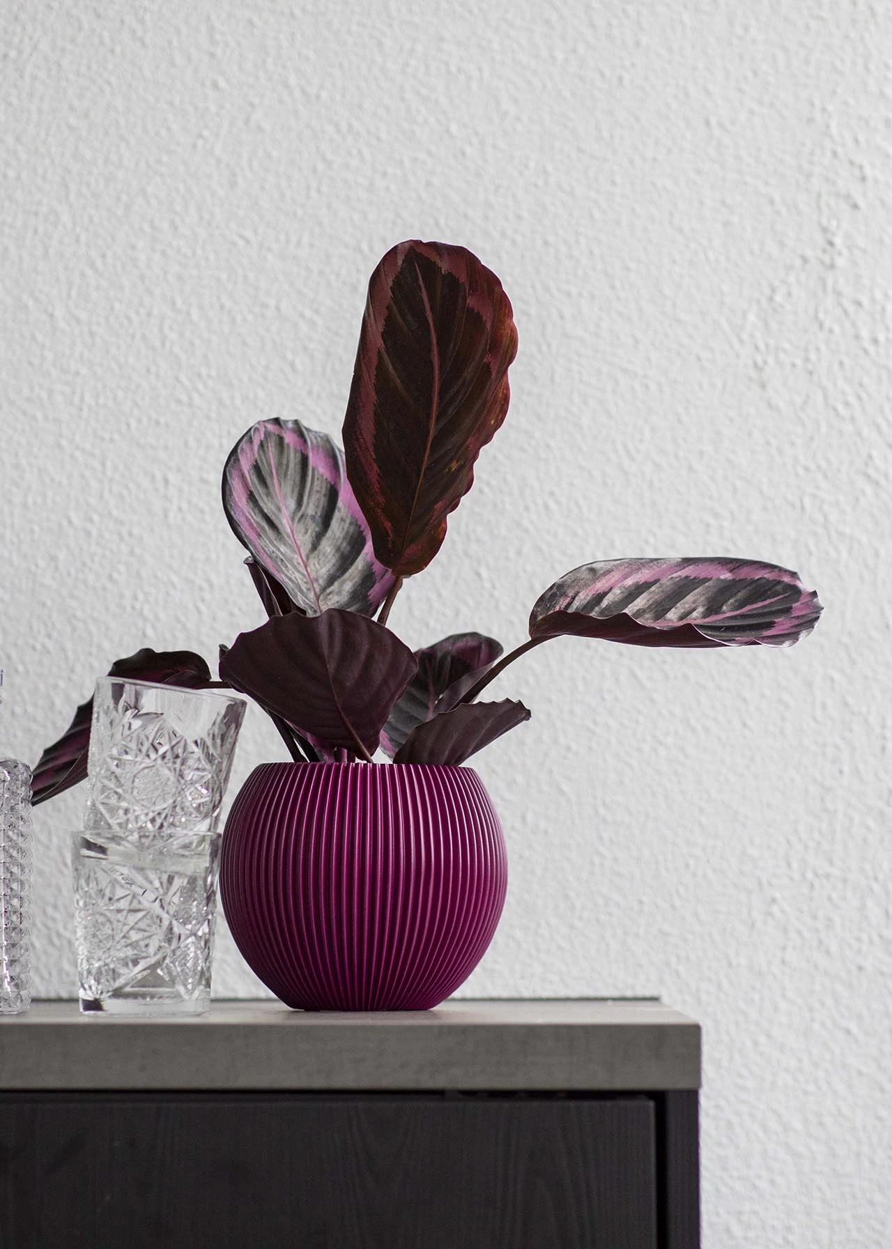 The unqiue finish and purple colour combines natural and modern so this planter will fit in any home interior.