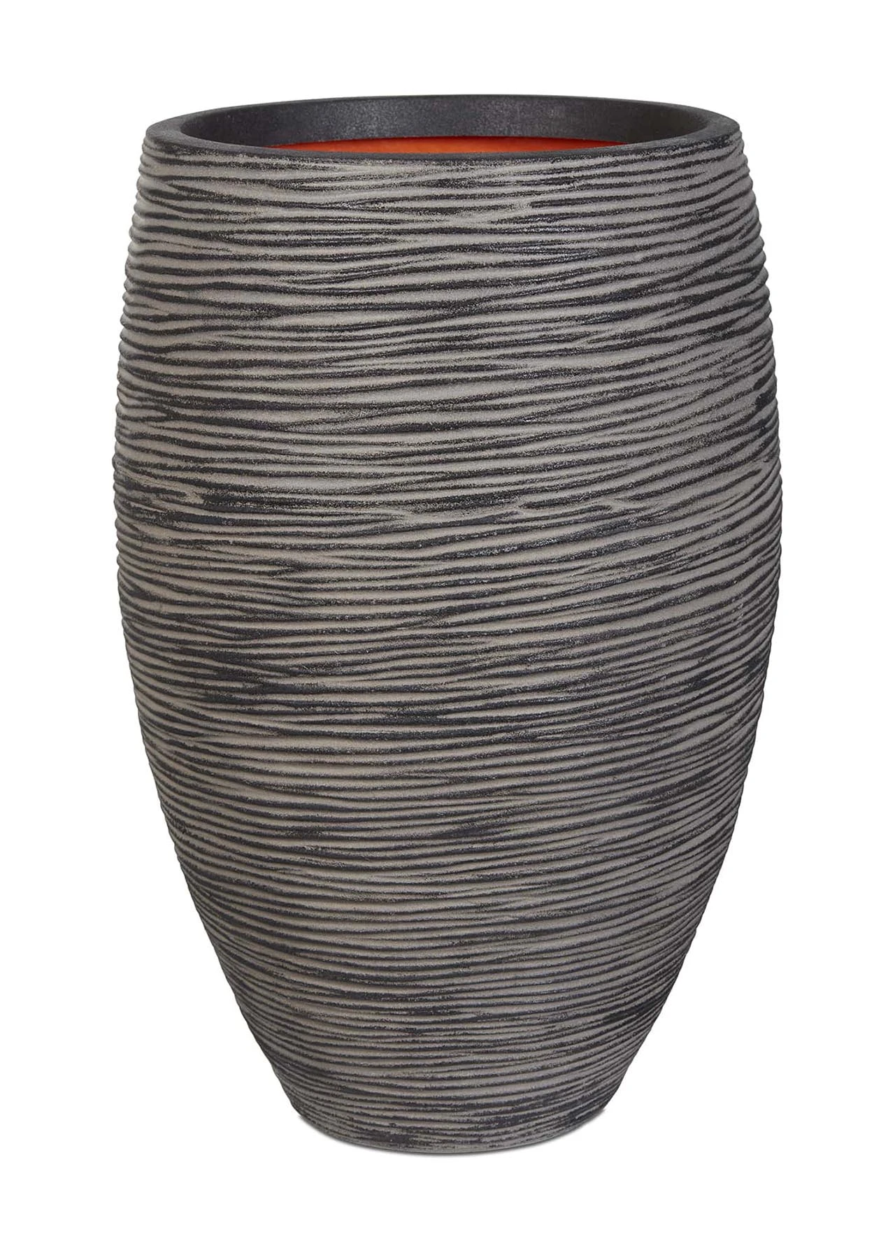 The Rib-texture gives the planter a natural look. The Rib’s texture is inspired by wickerwork with its elegant lines. Besides the natural look, the small, dancing lines provide a playful touch to these Capi pots. The Nature Rib NL is availablein the colours black, ivory, anthracite, dark brown and dark grey.