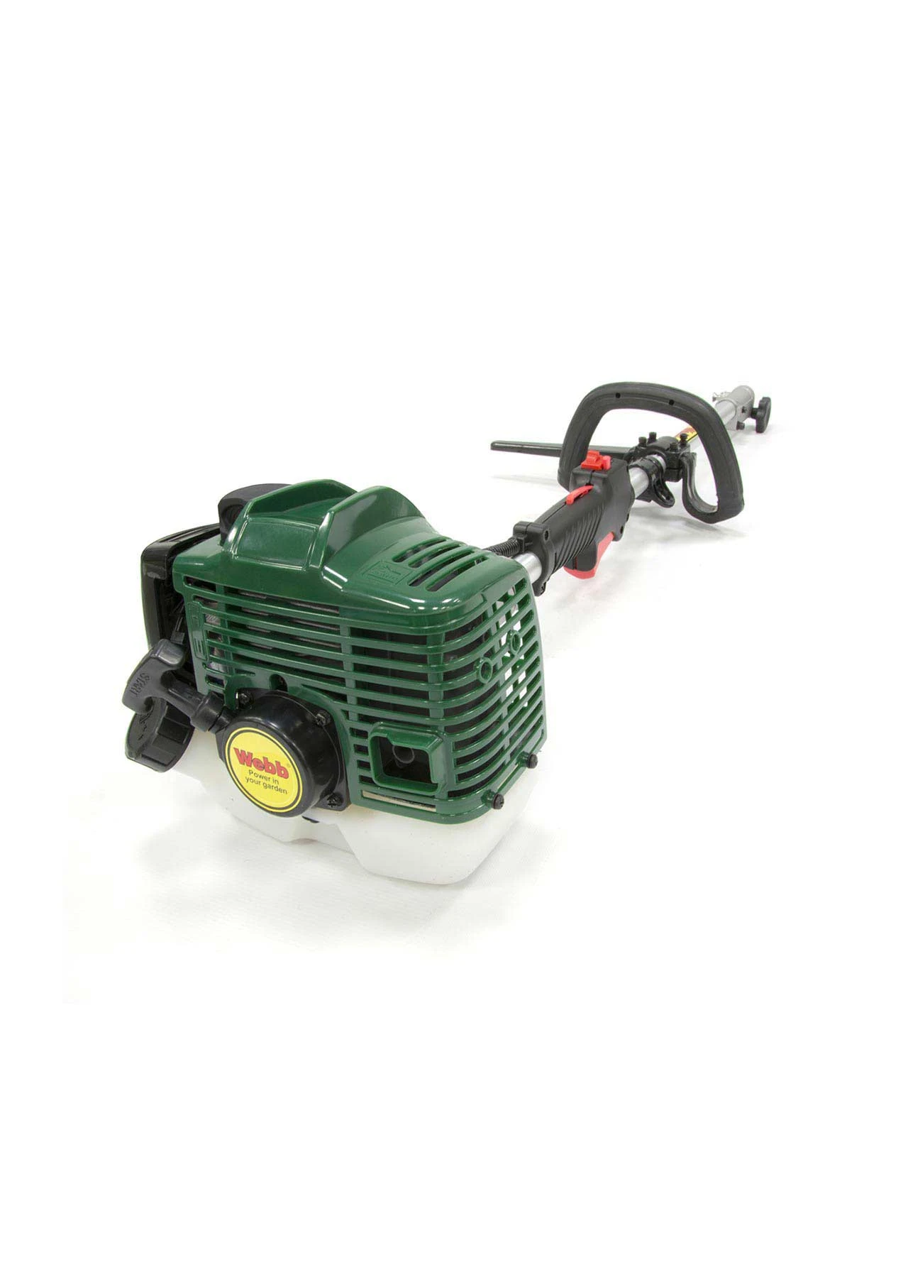 Enjoy the ultimate in gardening-convenience with this four-in-one petrol multi-tool from Webb. It ‘s powered by a superior 26cc full-crank engine and comes with the following attachments: line-trimmer; brushcutter; hedgetrimmer; pruner/chainsaw-head.