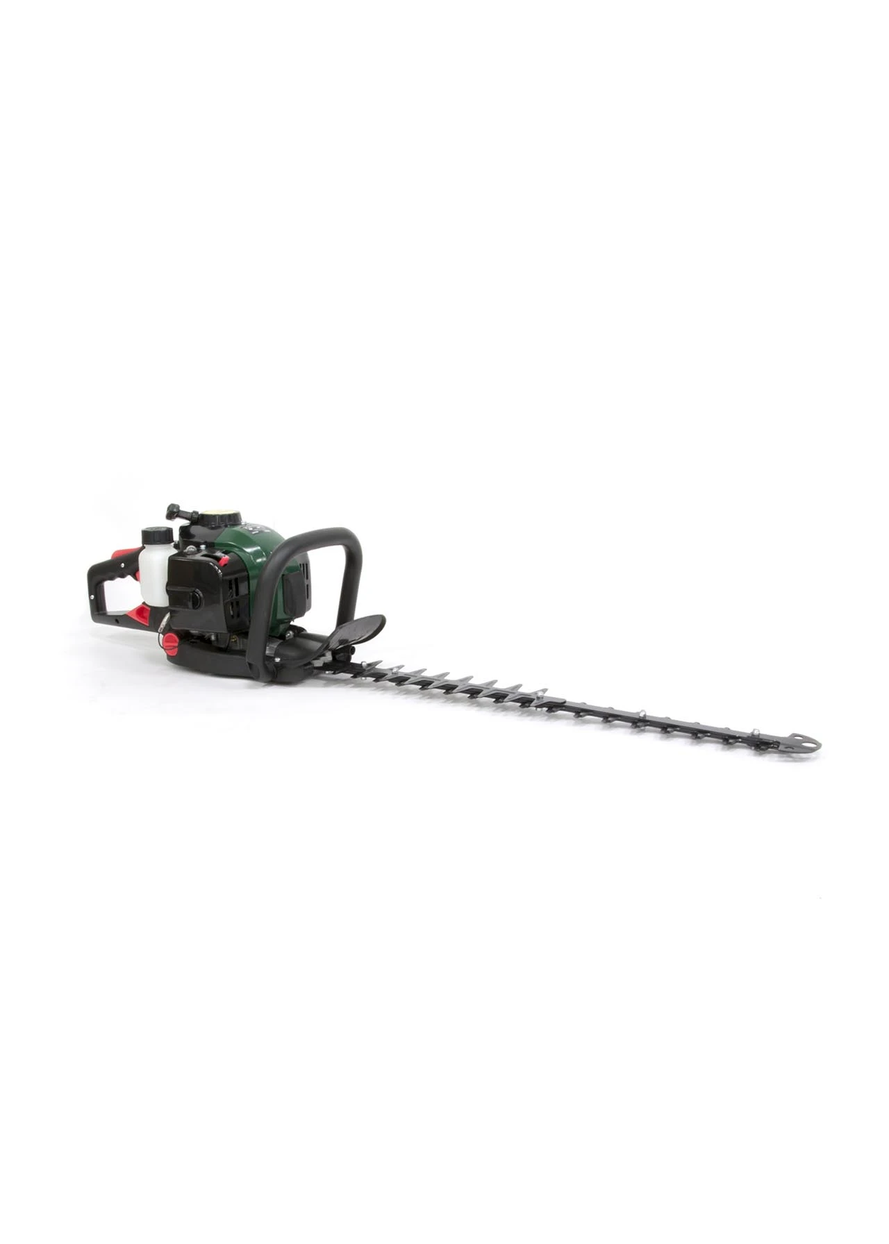 A 26cc two-stroke petrol engine powers this hedge cutter with a 56cm double-sided blade.