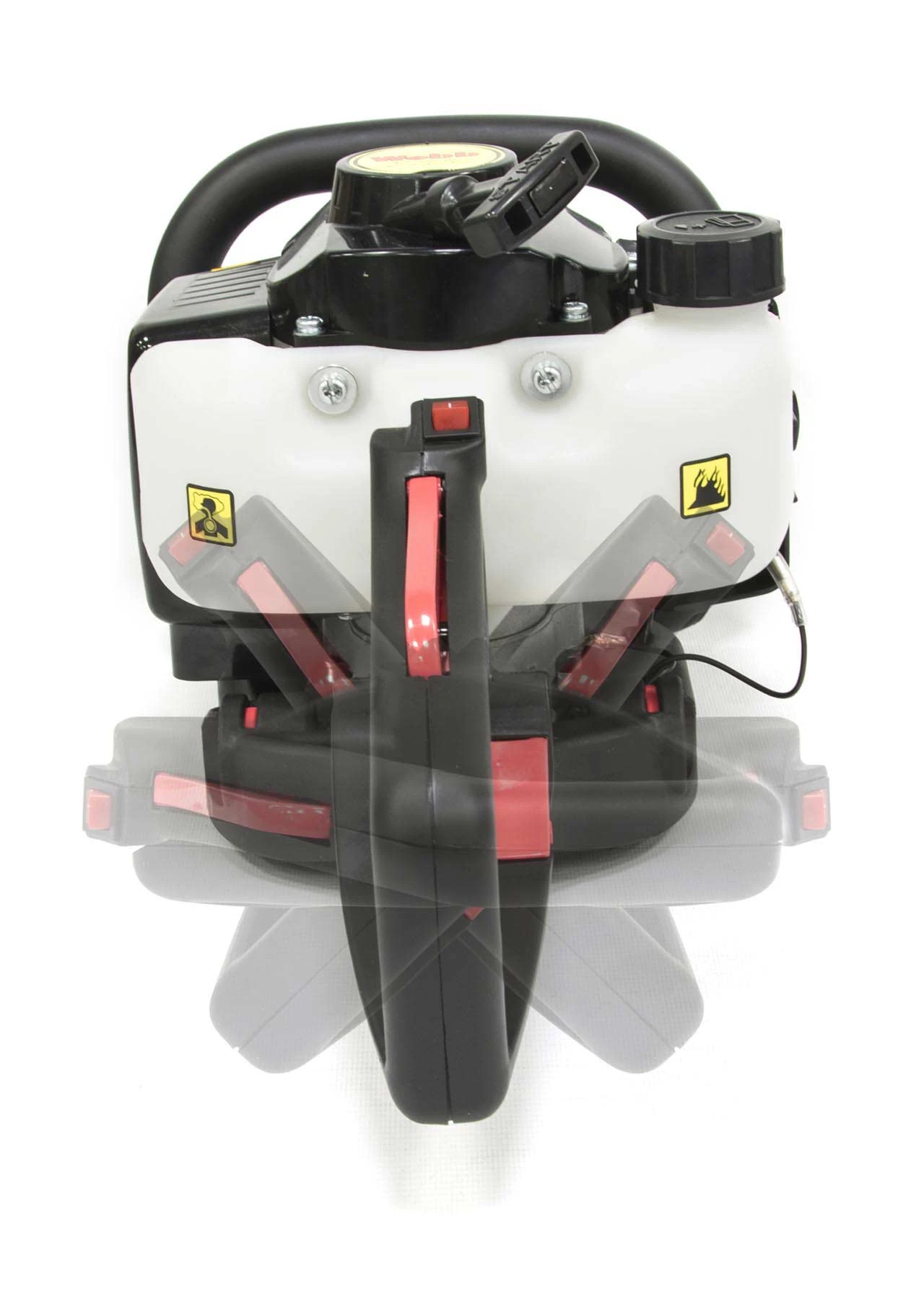 An adjustable five-position rear handle allows the user to find a comfortable working position to cut and shape all sizes of hedge.