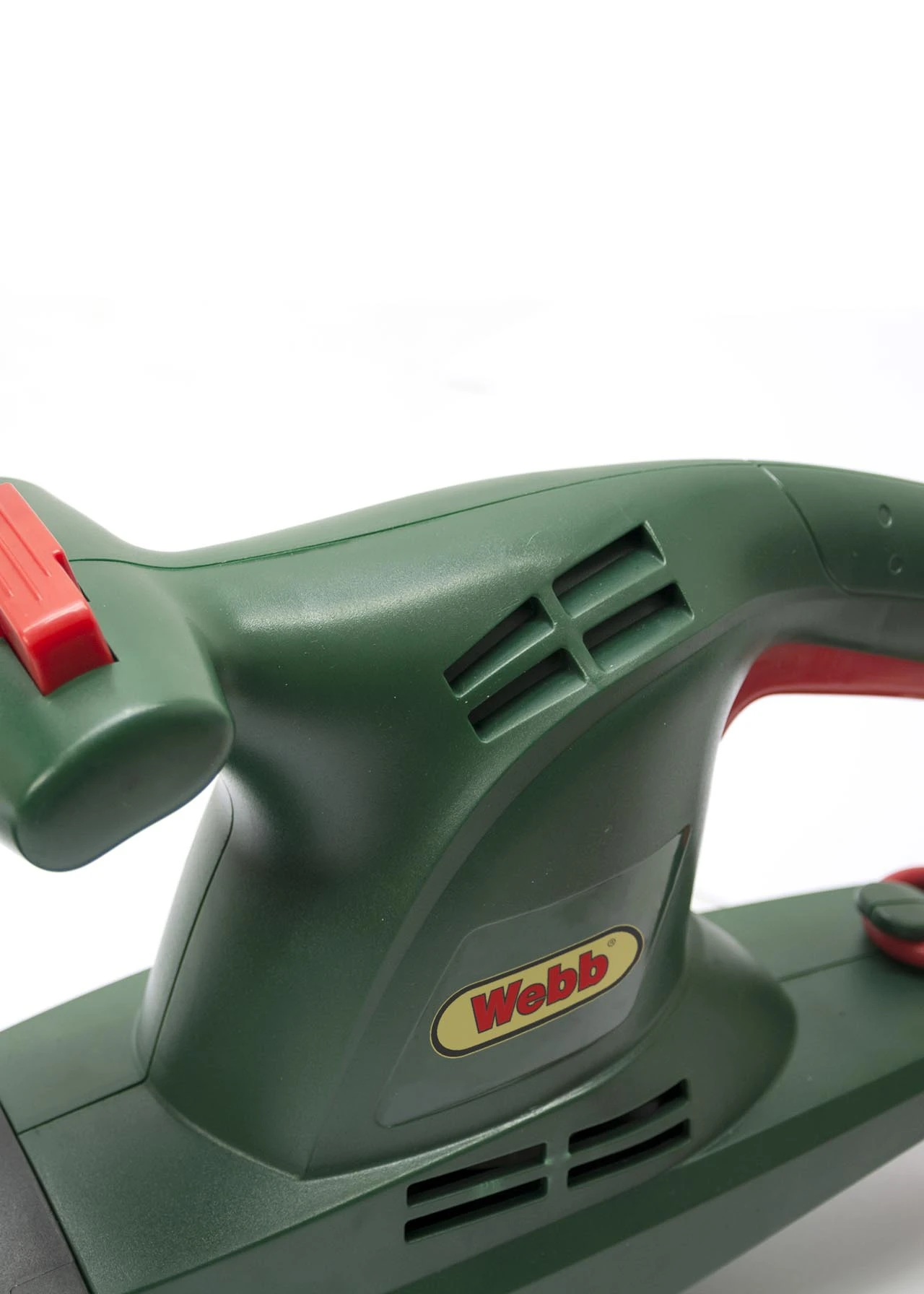 A two-handed safety-system automatically halts the blade when either hand is removed; while Webbs provision of a protective sheath ensures the blades won’t be exposed to damaging dirt and moisture during storage.